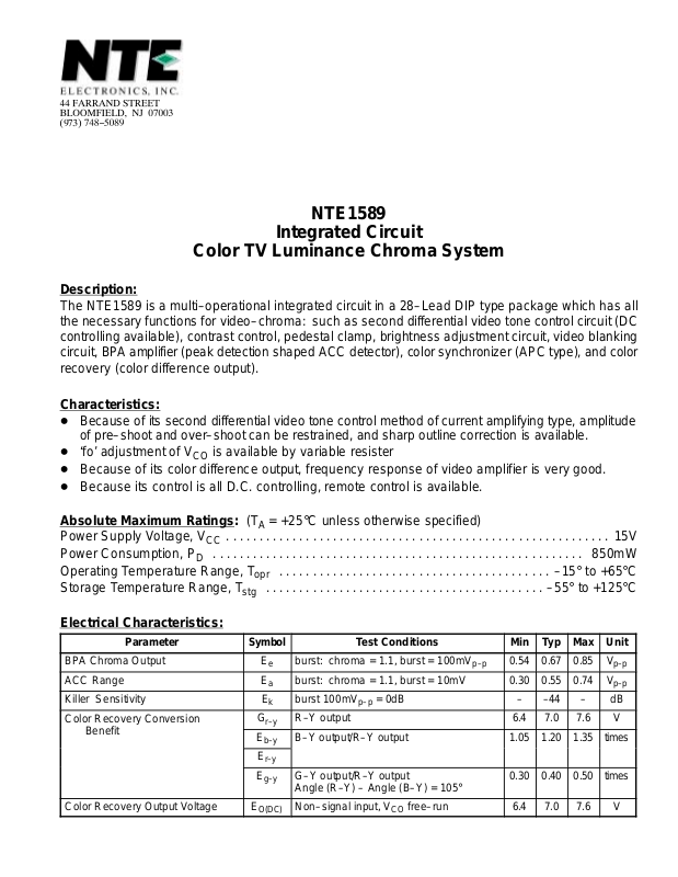 The NTE1589 is a multi–operational integrated circuit in a 28–Lead DIP type package which has all