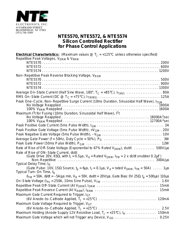 NTE5574 1200V. . . . . . . . . . . . . . . . . . . . . . . . . . . . . . . . . . . . . . . . . . . . . . . . . . . . . . . . . . . . . . . . . .