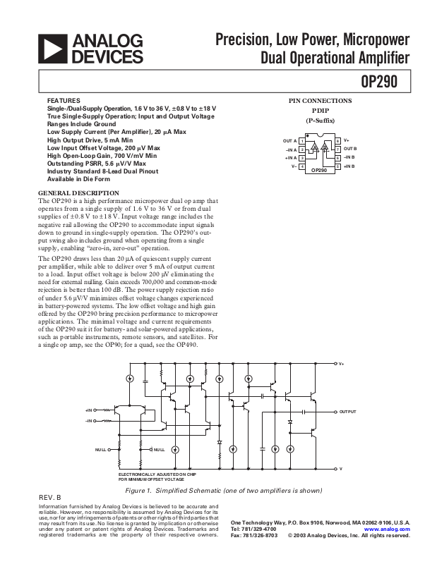 the OP290 features proprietary ESD protection circuitry, permanent damage may occur on devices