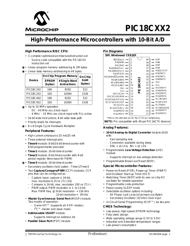 TABLE 1-2:PIC18C2X2 PINOUT I/O DESCRIPTIONS