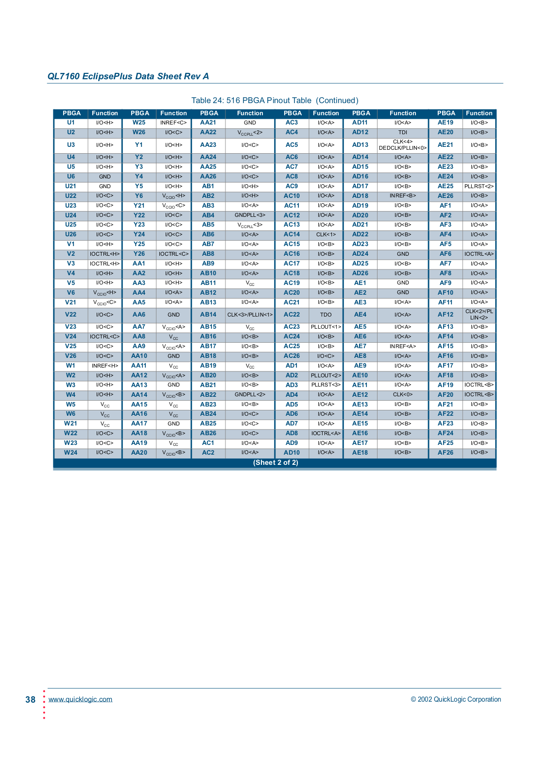 Datasheet QL7160-4PB516C, QL7160-4PB516I, QL7160-4PB516M, QL7160-4PS484C, QL7160-4PS484I Datasheet (QUICK LOGIC)