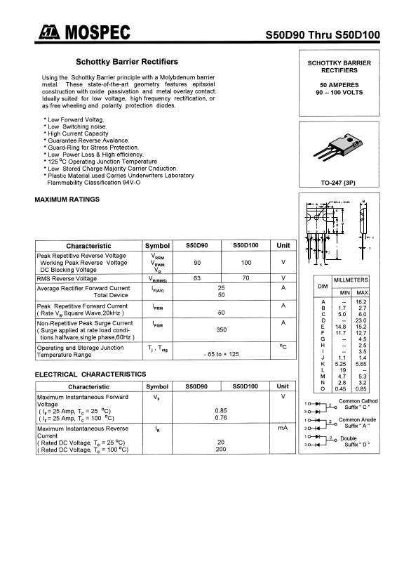 Datasheet S50D100, S50D90 Datasheet (MOSPEC)