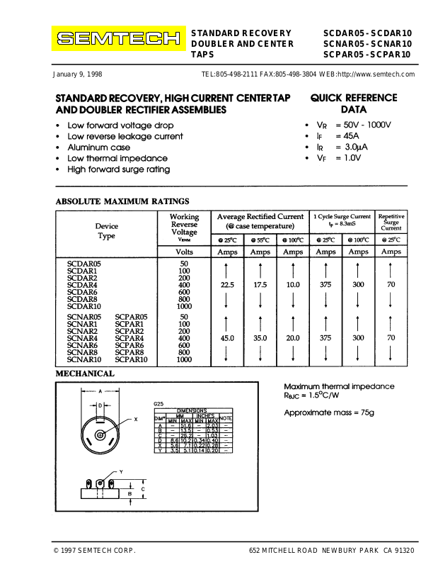 Datasheet SCDAR05, SCDAR10, SCNAR05, SCNAR10, SCPAR05 Datasheet (SEMTECH)