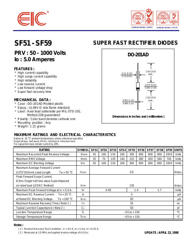 IF(AV) 5.0 Amps.