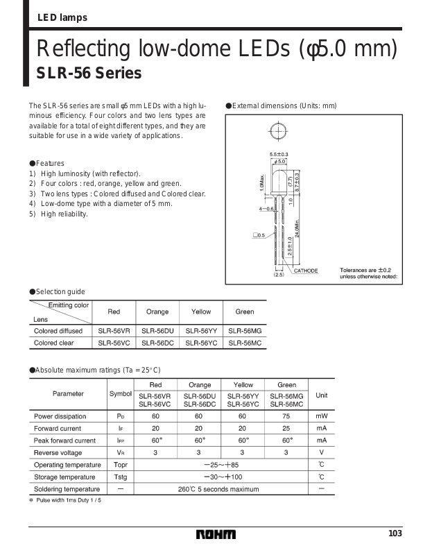 Datasheet SLR-56DC, SLR-56DU, SLR-56MC, SLR-56MG, SLR-56VC, SLR-56VR, SLR-56YC, SLR-56YY Datasheet (ROHM)