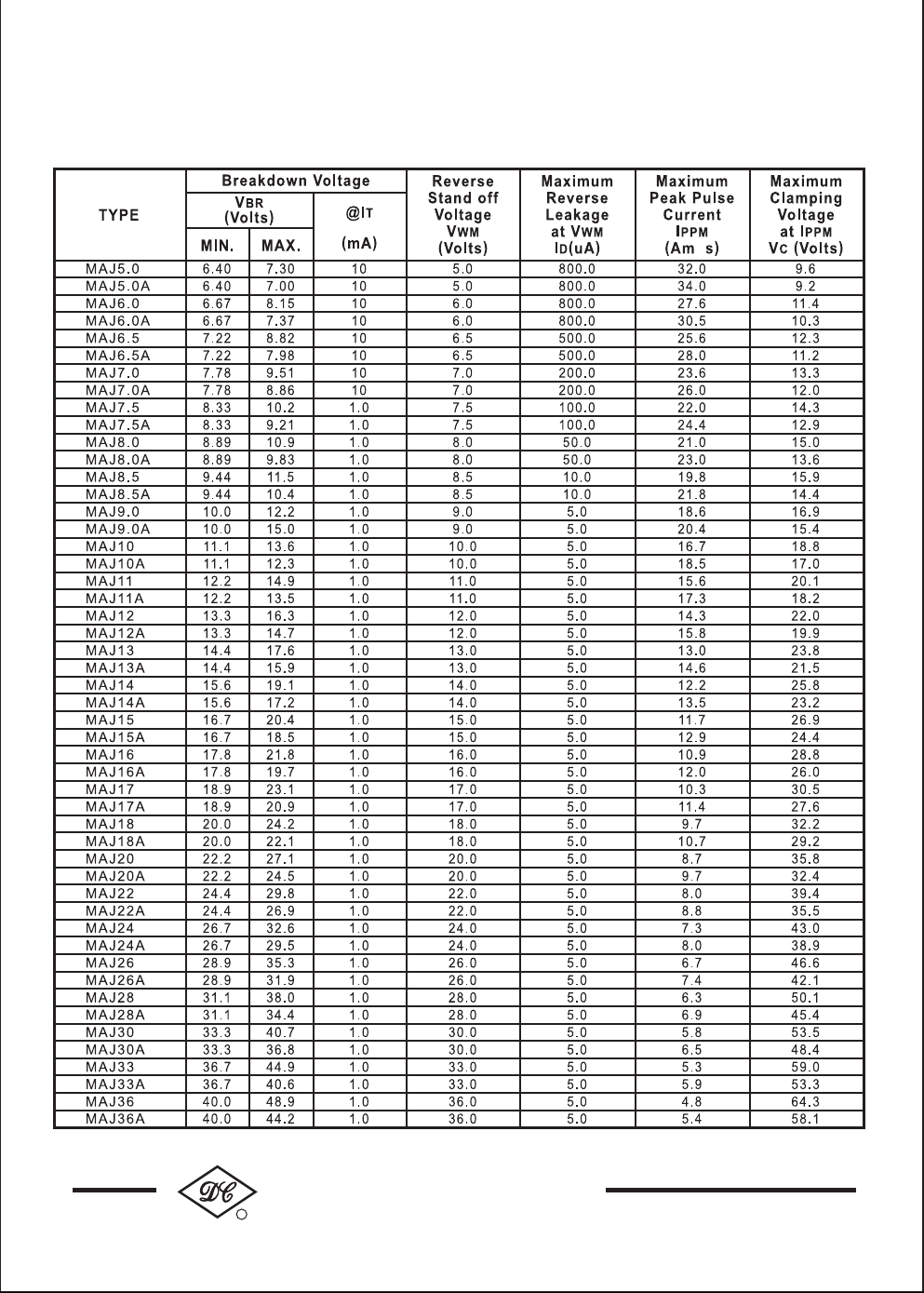 2.For bidirectonal use C or CA suffixs for all types (ex. SMAJ5.0C, SMAJ170CA).