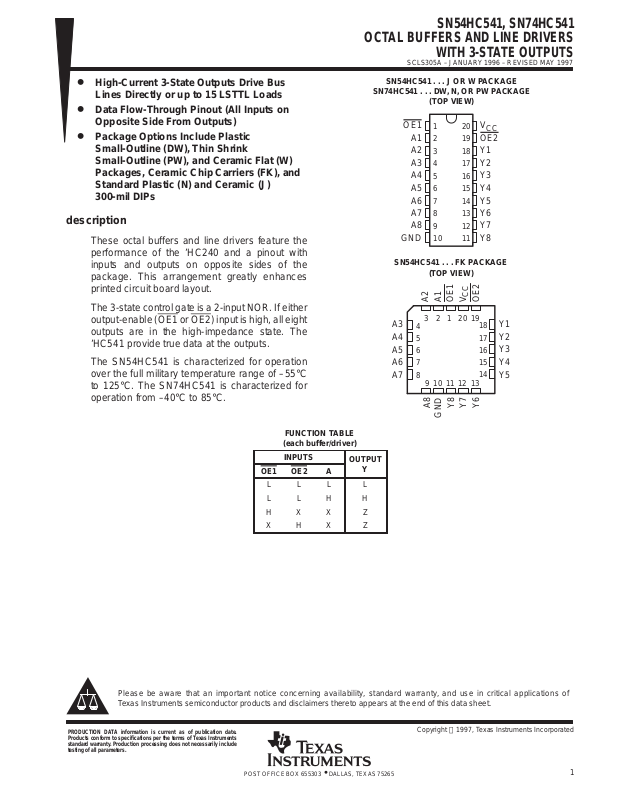 SN74HC541 ...DW, N, OR PW PACKAGE