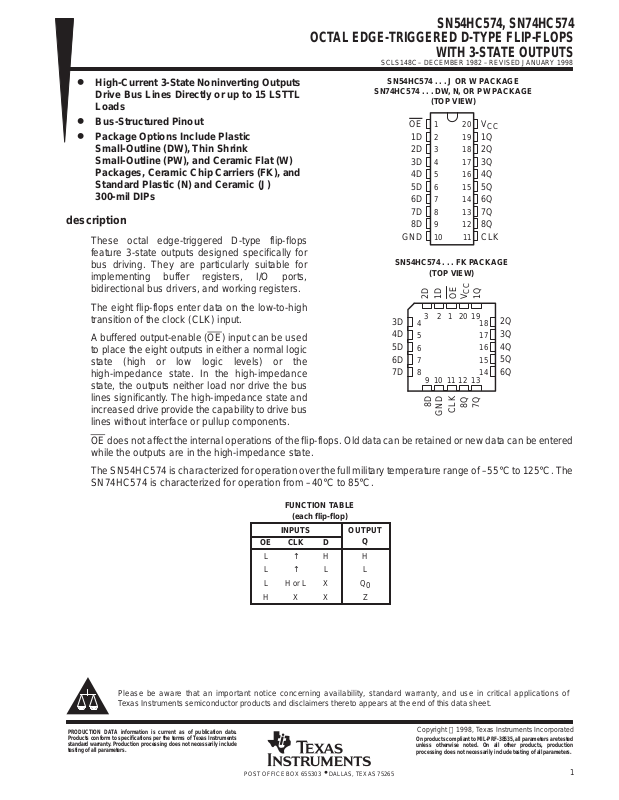 SN74HC574 ...DW, N, OR PW PACKAGE