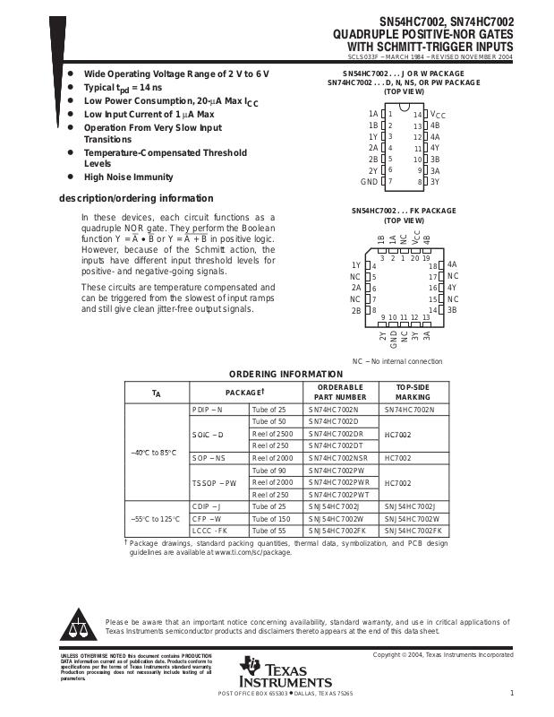 Datasheet SN54HC7002, SN74HC7002 Datasheet (TEXAS INSTRUMENTS)