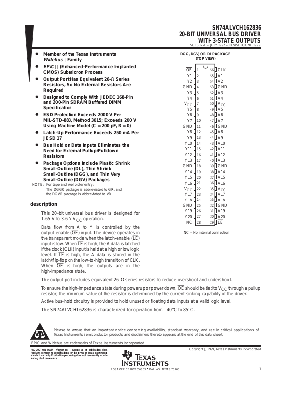 EPIC and Widebus are trademarks of Texas Instruments Incorporated.