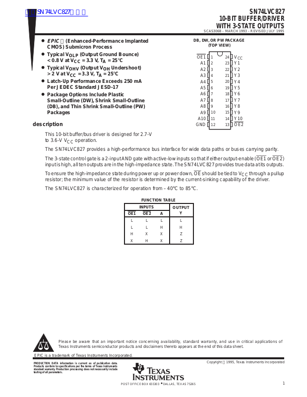 input is high, all ten outputs are in the high-impedance state. The SN74L VC827 provides true data at its outputs.