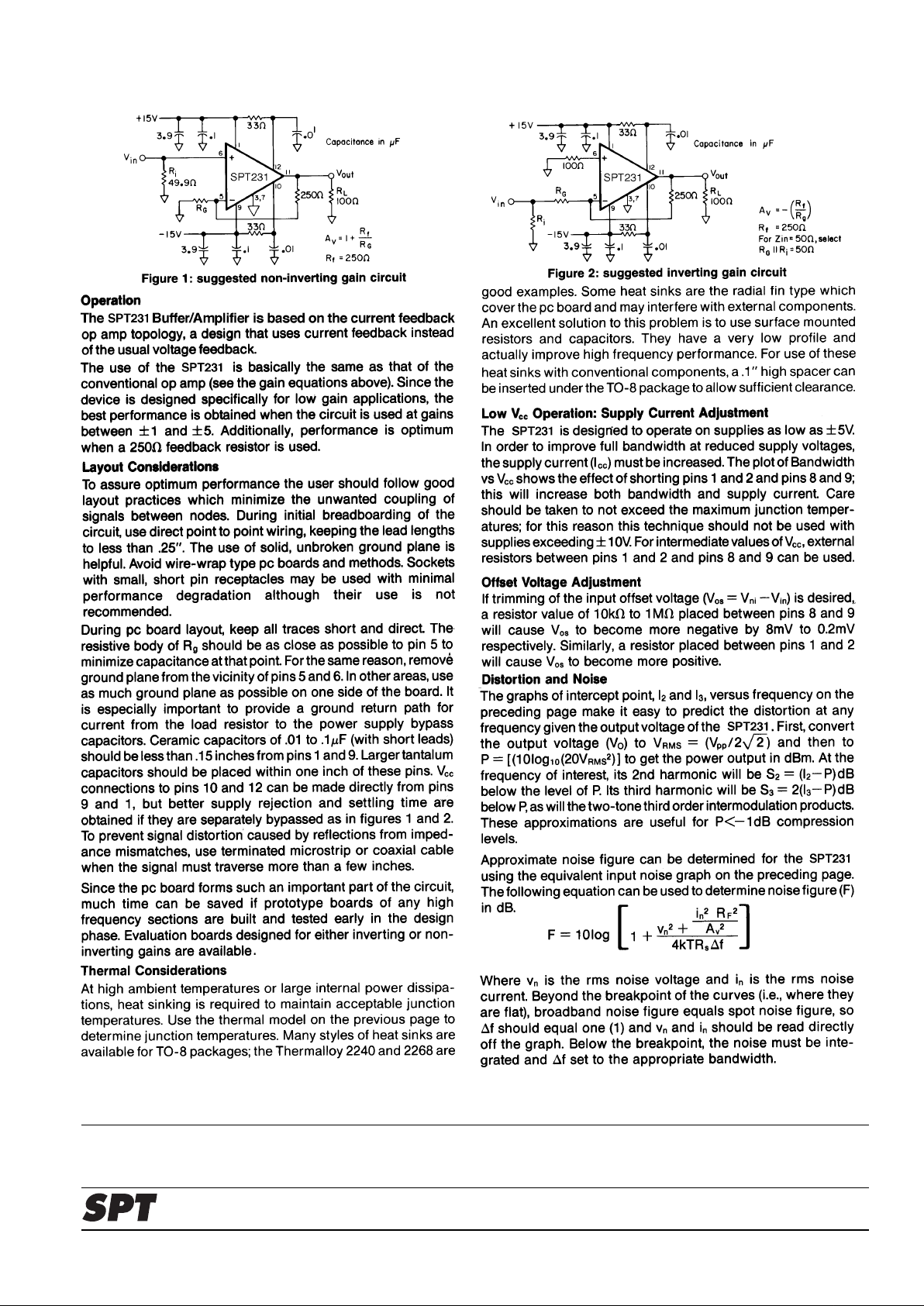 The SPT231 Buffer/Amplifier is a wideband operational amplifier