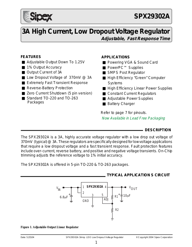The SPX29302A is offered in 5-pin TO-220 & TO-263 packages.