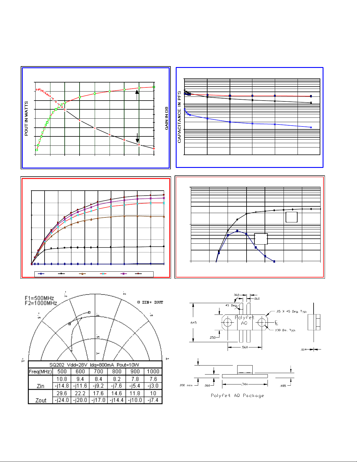 SQ202 POUT VS PIN Freq=1000MHz, VDS=28V, Idq=.4A