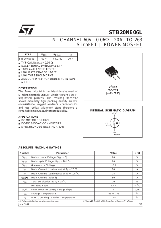 (•) Pulse width limited by safe operating area(1)ISD≤ 20 A, di/dt ≤ 300 A/µs, VDD≤ V