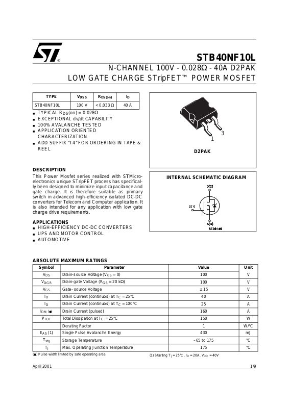 This Power Mosfet series realized with STMicroelectronics unique STripFET process has specifically been designed to minimize input capacitance and