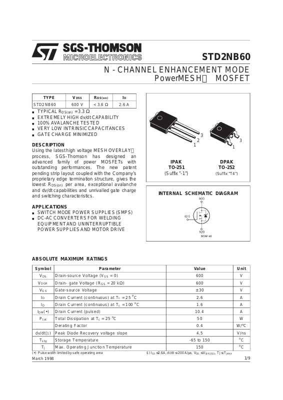 (•) Pulse width limited by safe operating area(1)ISD≤2.6A, di/dt ≤ 200 A/µs, VDD≤ V