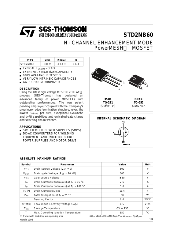 (•) Pulse width limited by safe operating area (1) ISD ≤2.6A, di/dt ≤ 200 A/µs, VDD ≤ V