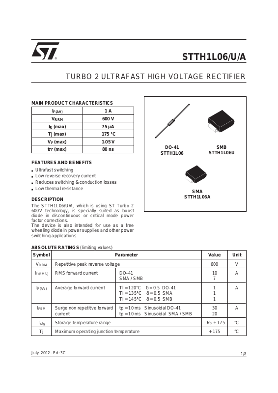STTH1L06 STTH1L06 DO-41 0.34 g 2000 Ammopack