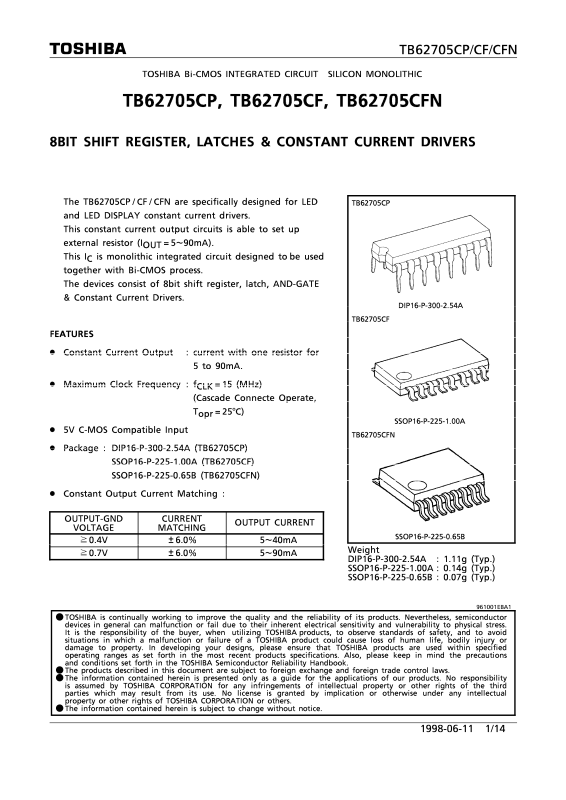 Datasheet TB62705CP, TB62705CF Datasheet (Toshiba)