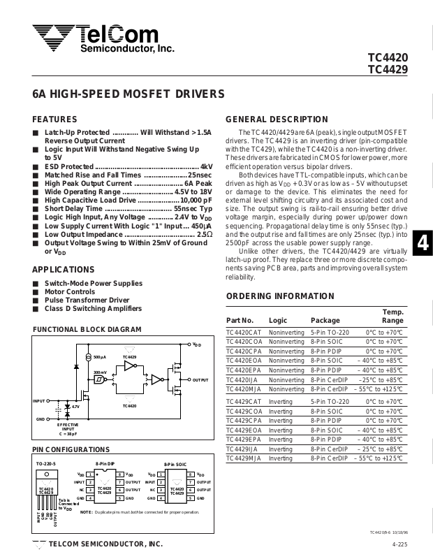 with the TC429), while the TC4420 is a non-inverting driver.