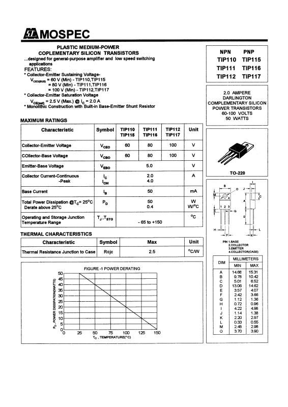 Datasheet TIP115, TIP117, TIP112, TIP111, TIP116 Datasheet (MOSPEC)