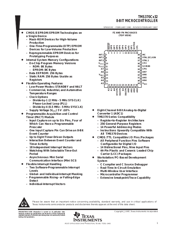 TMS370 MICROCONTROLLER PRODUCTS