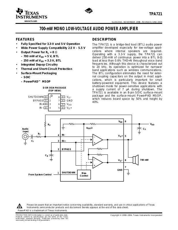 700-mW MONO LOW-VOLTAGE AUDIO POWER AMPLIFIER