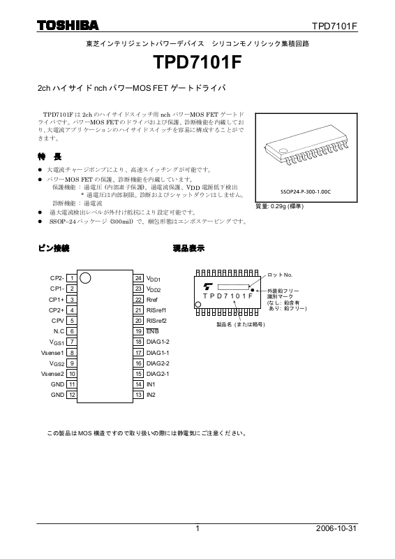 TPD7101F は 2ch のハイサイドスイッチ用 nch パワーMOS FET ゲートド