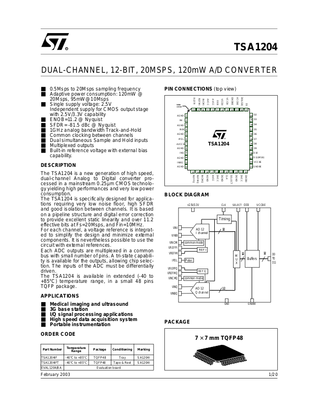 The TSA1204 is specifically designed for applications requiring very low noise floor, high SFDR