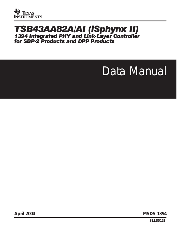 The TSB43AA82A is a high performance 1394 integrated PHY and link layer controller. It is compliant with the