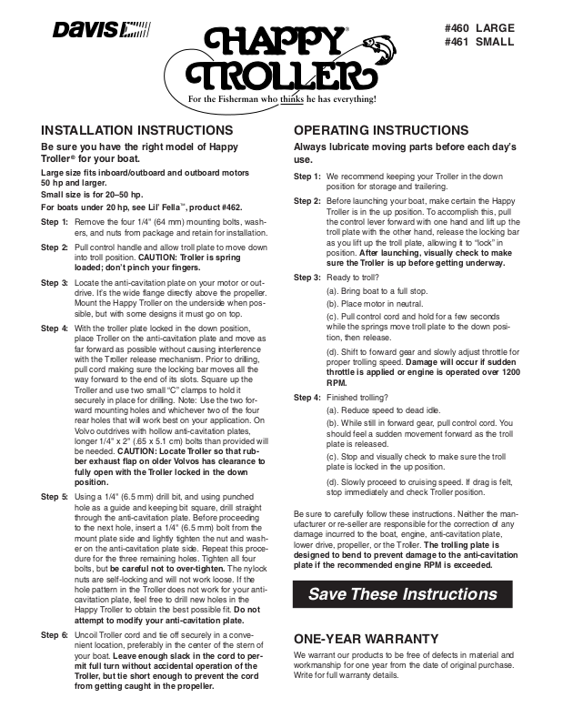 Step 6: Uncoil Troller cord and tie off securely in a conve-