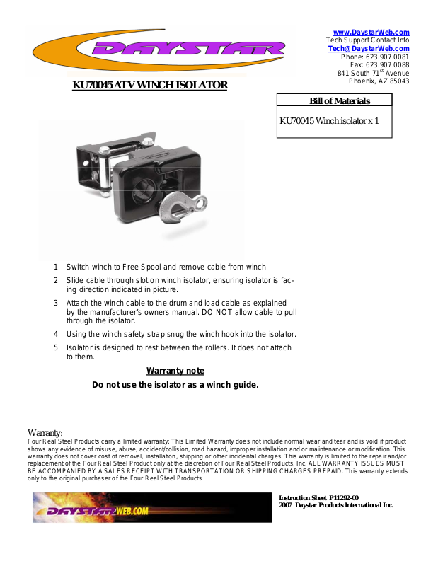 Instruction Sheet P11292-00