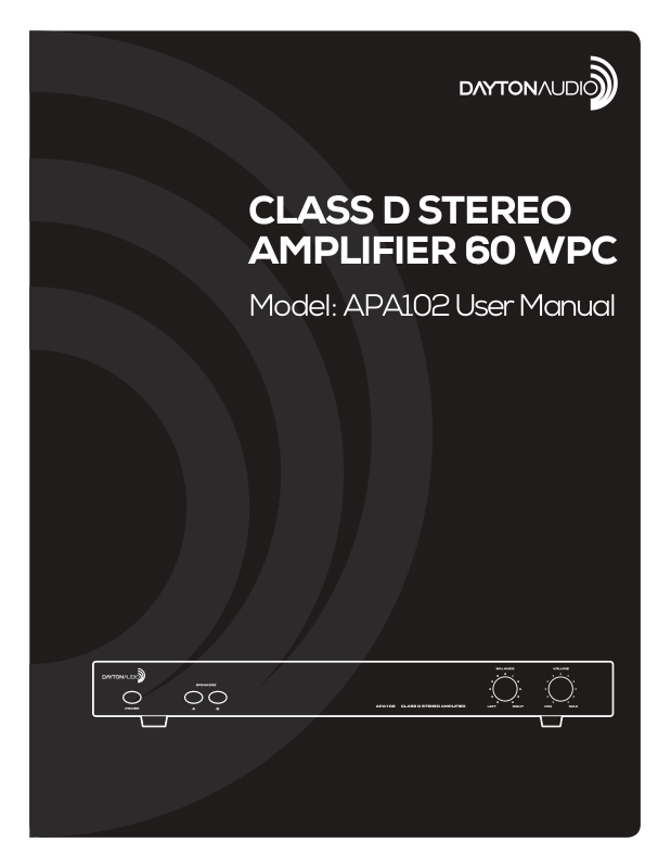 Thank you for purchasing the Dayton Audio APA102 Class D Stereo Amplifier. This amplifier features bridged outputs that