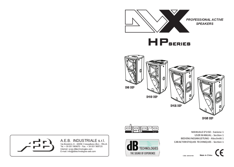 Contattare dB Technologies per gli accessori da utilizzare a corredo.
