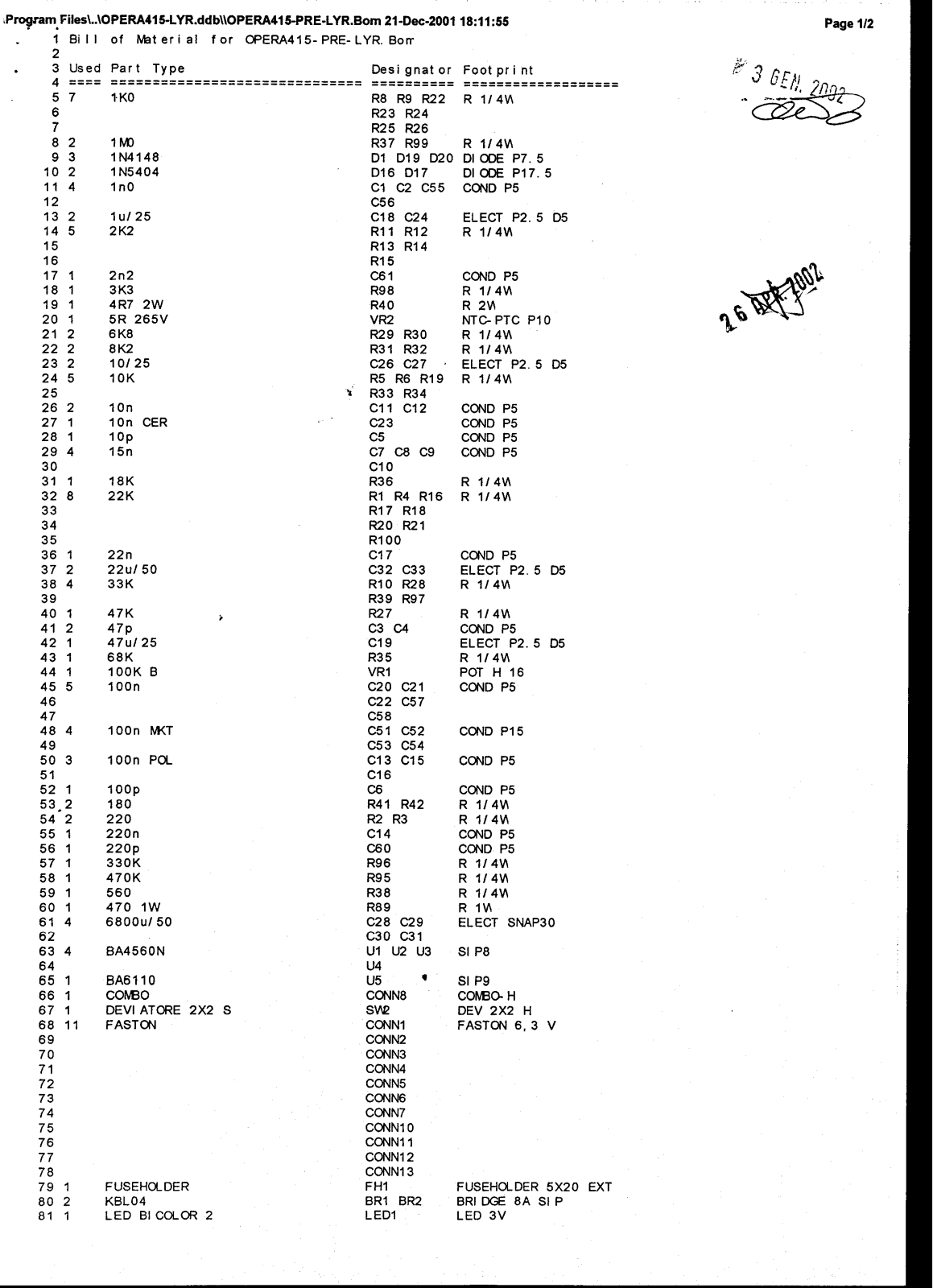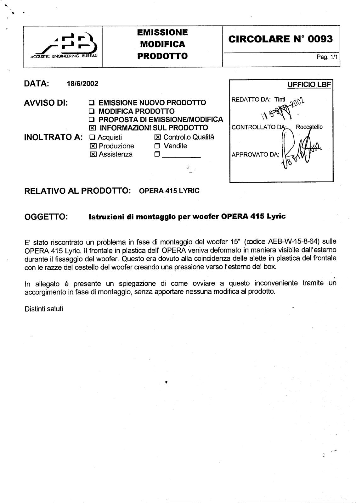 dB TECHNOLOGIES opera 415 lyric Schematic