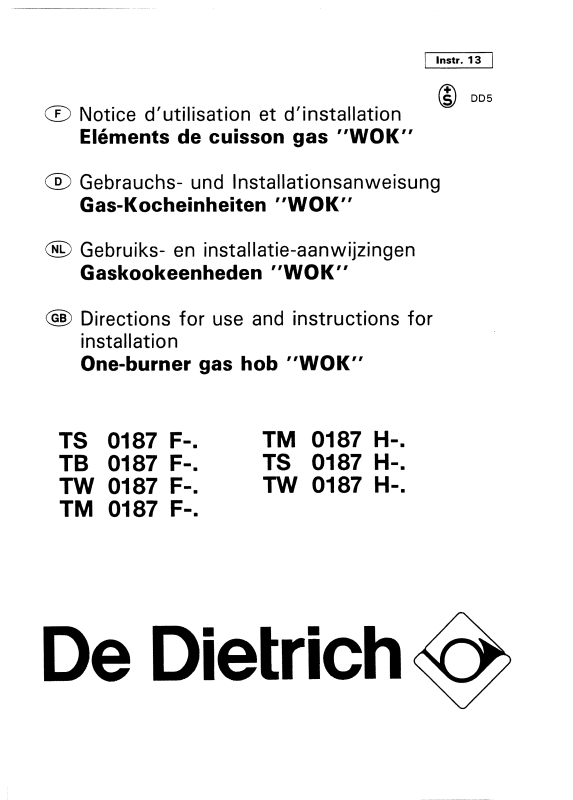 De dietrich TM0187F1N, TM0187F1B, TM0187F1 User Manual