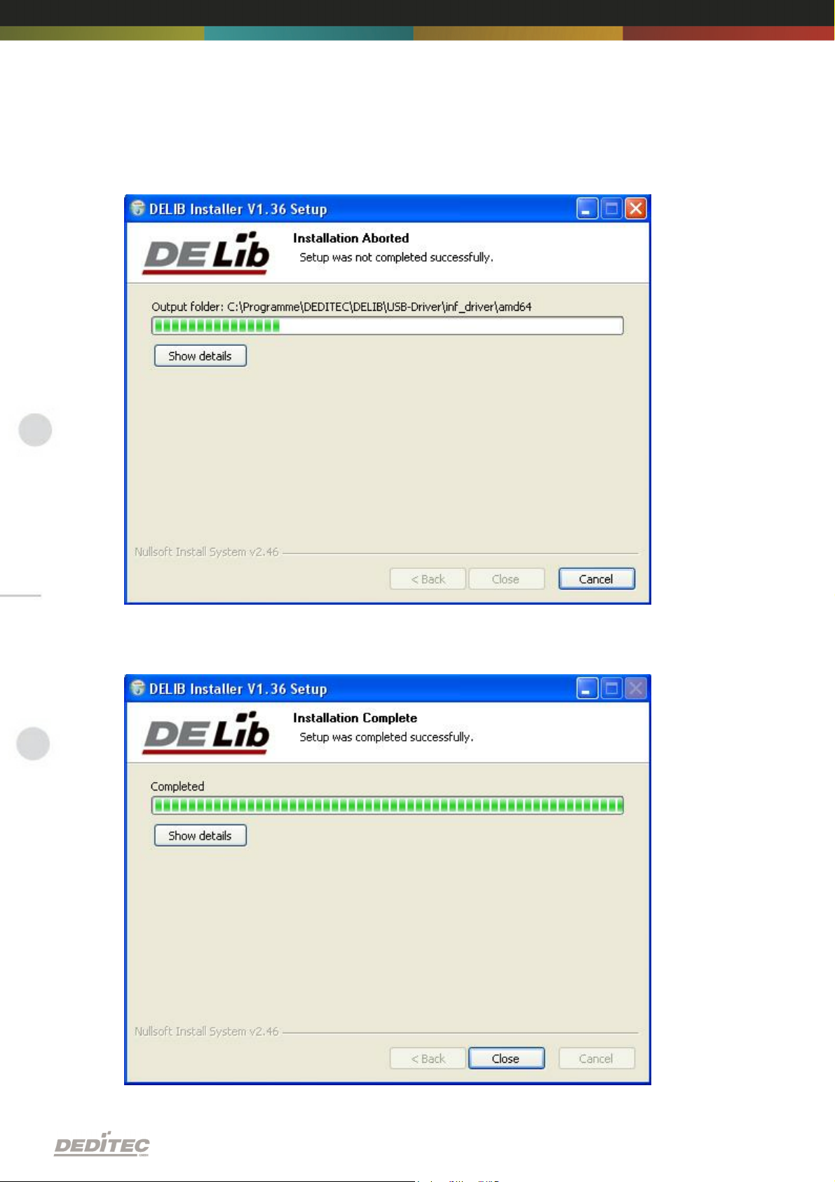 The DELIB driver library is now installed. Press „Close“ to finish the installation.