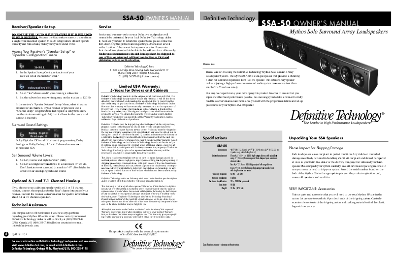 Definitive Technology, Owings Mills, Maryland, USA. 800-228-7148