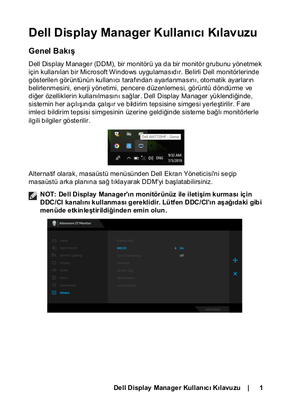 Lütfen DDM'nin sadece Dell markalı monitörler ile çalıştığını not edin. Eğer