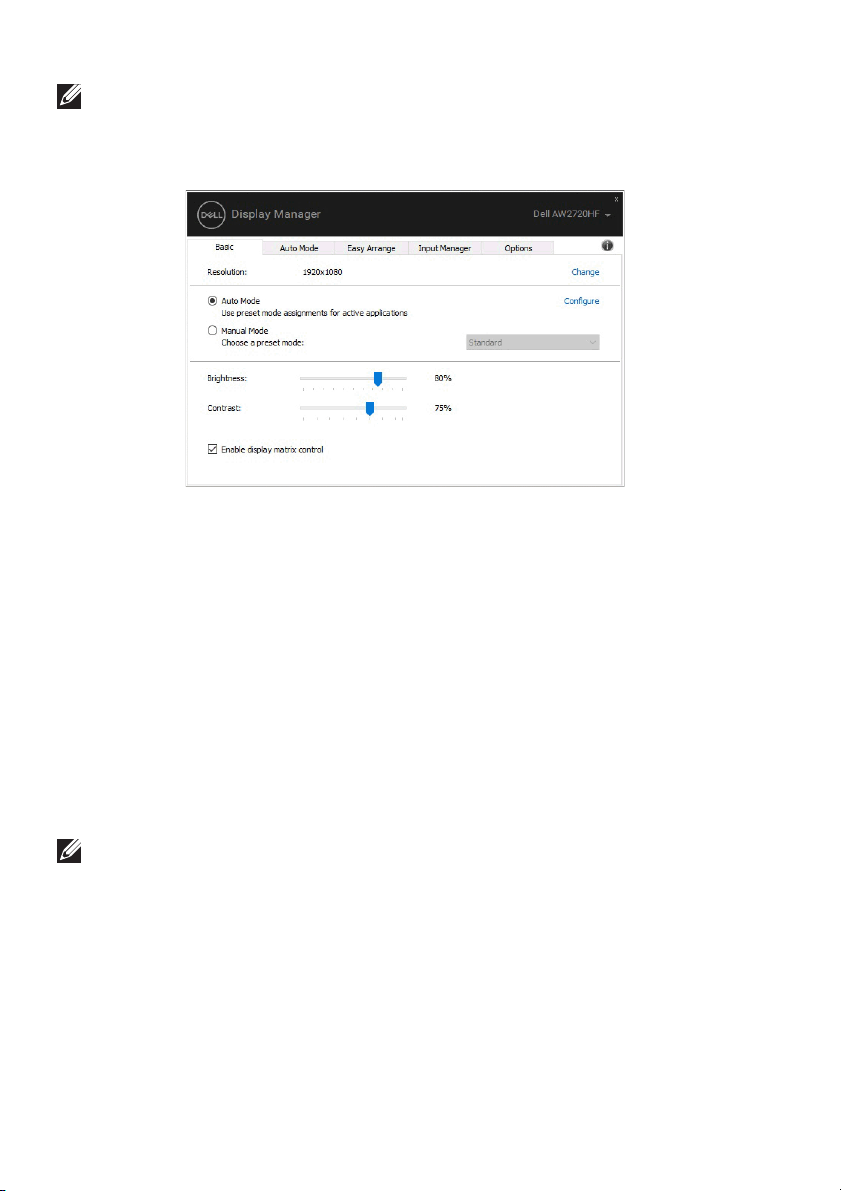 sučelju Dell Display Managera radi podešavanja osnovnih funkcija, konfiguracije