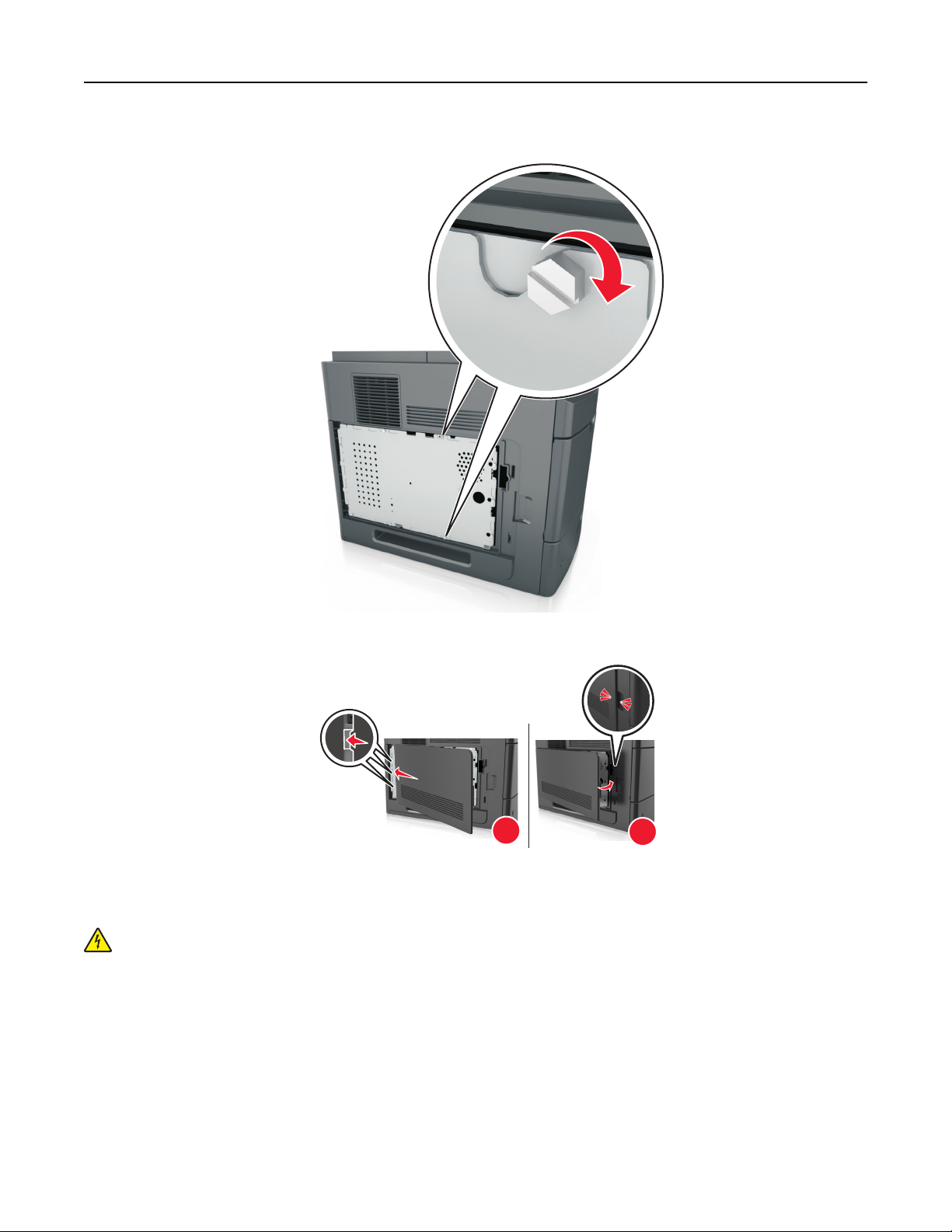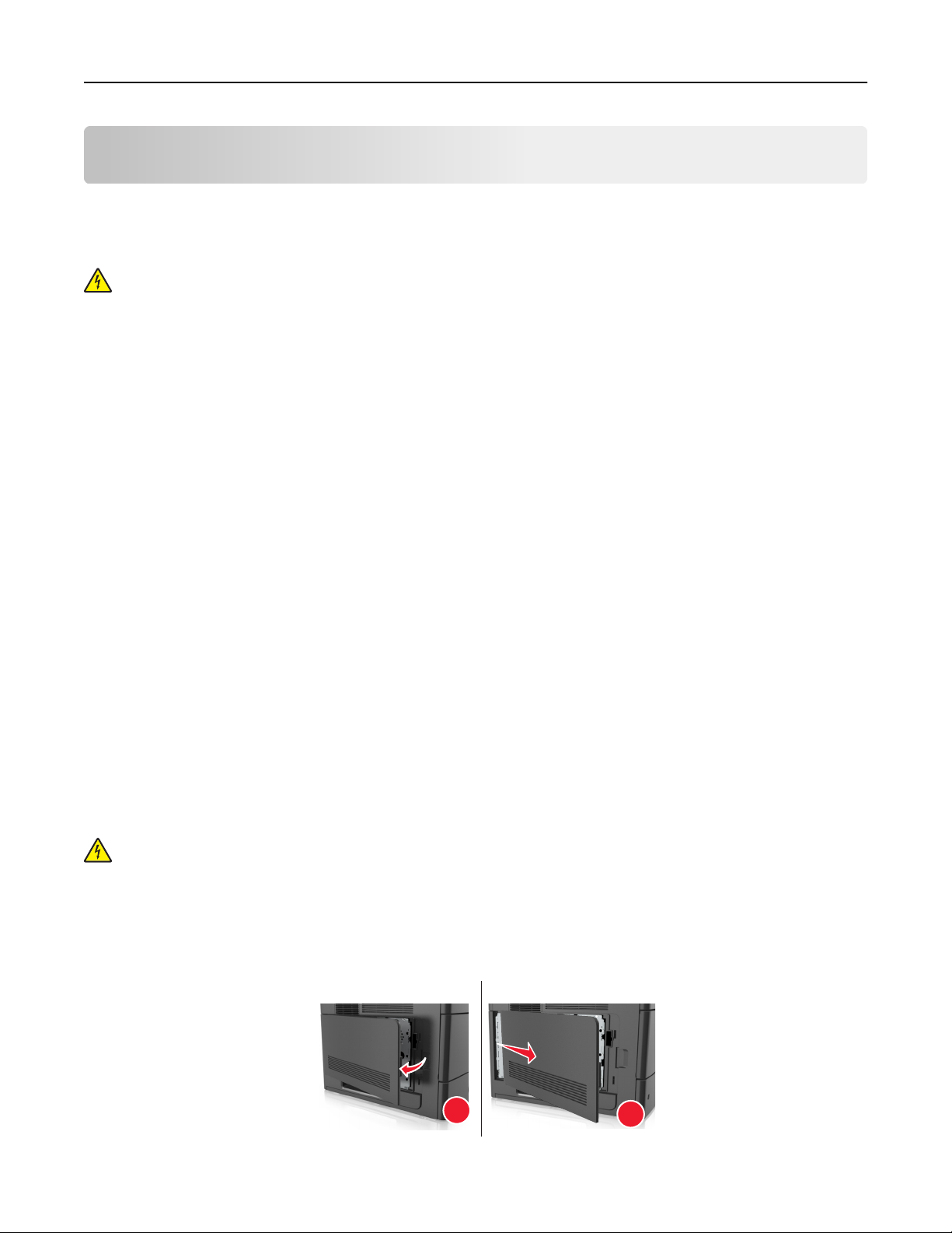 MISE EN GARDE—SURFACE BRULANTE : l'intérieur de l'imprimante risque d'être brûlant. Pour réduire le risque