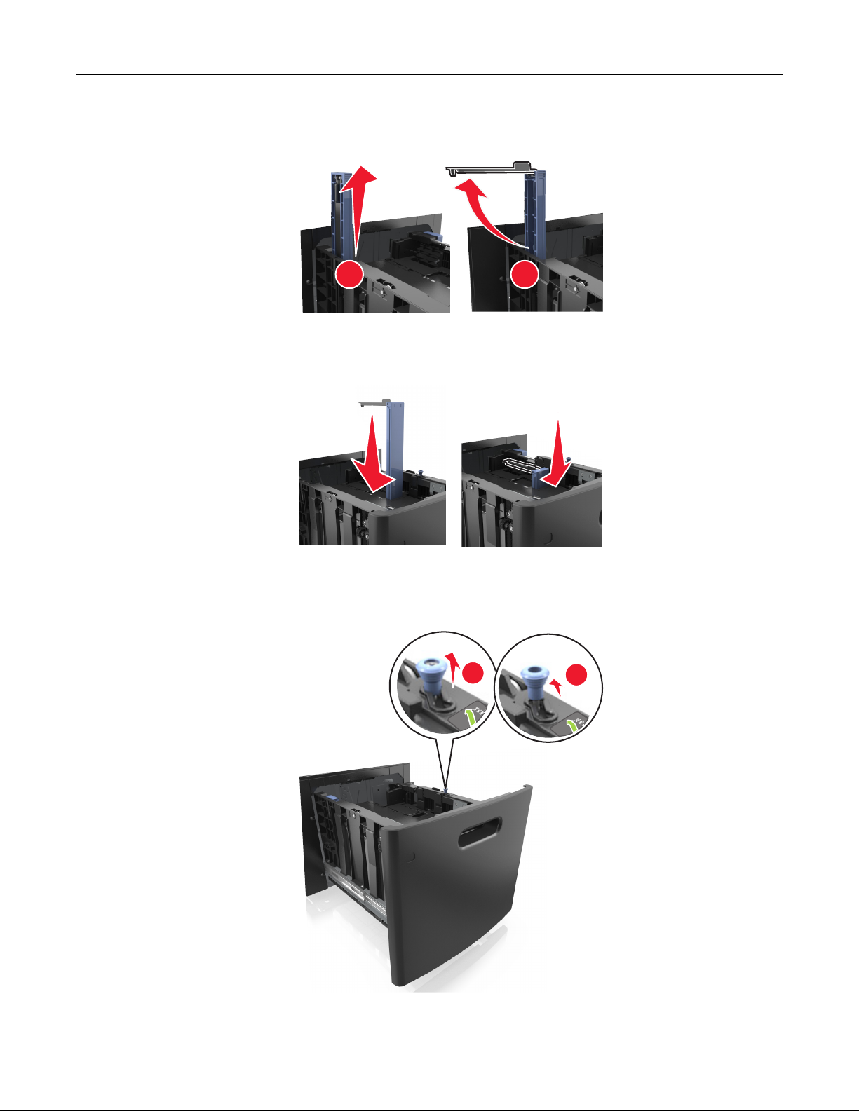 Remarque : Faites glisser le loquet sur la droite du tiroir optionnel vers l'avant du tiroir jusqu'à ce qu'il