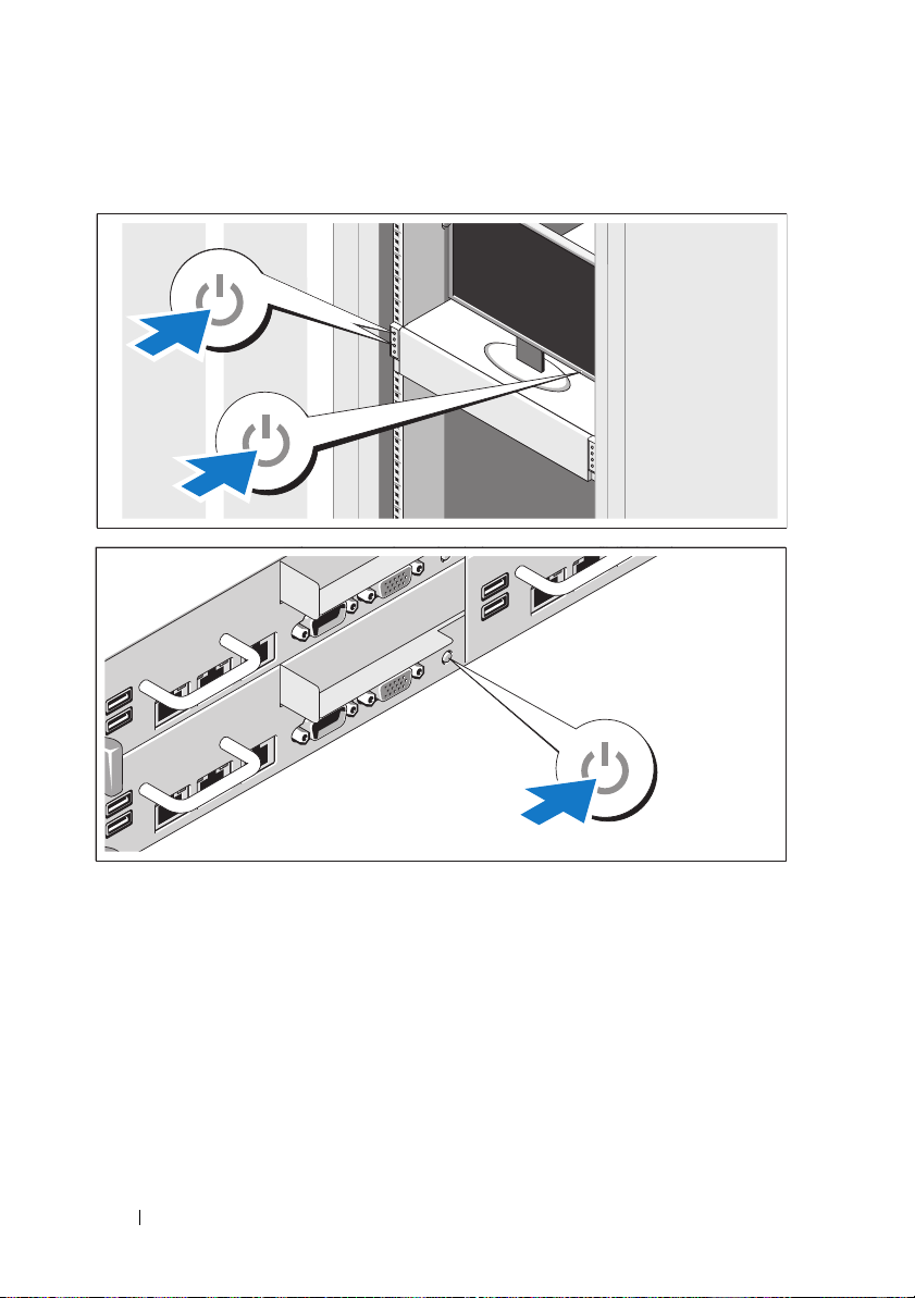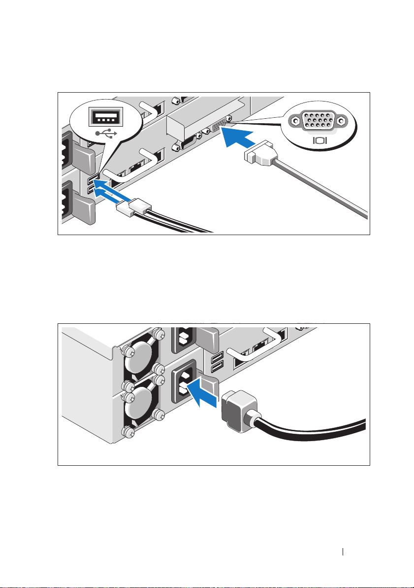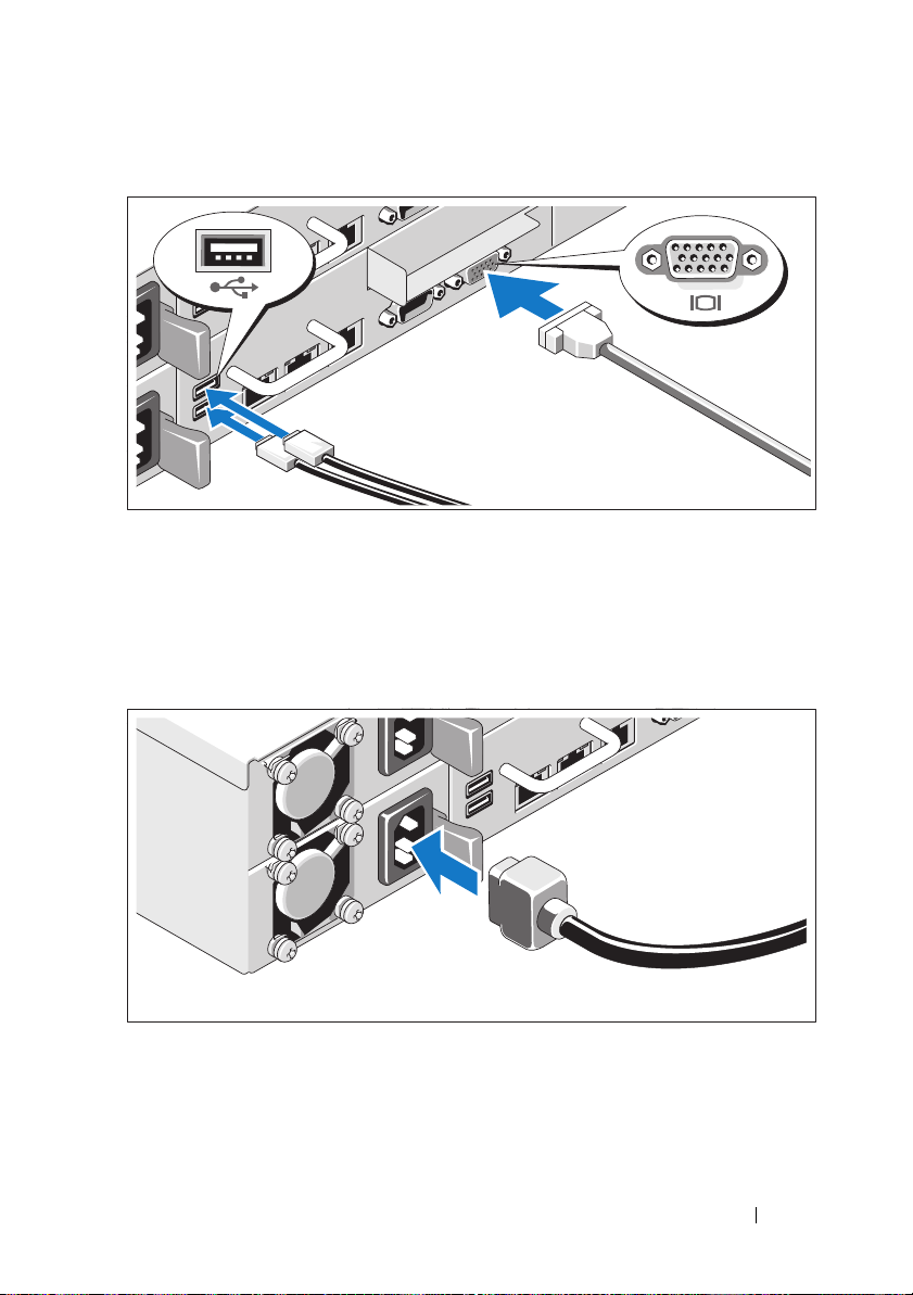 Connect the system’s power cable(s) to the system and, if a monitor is used,