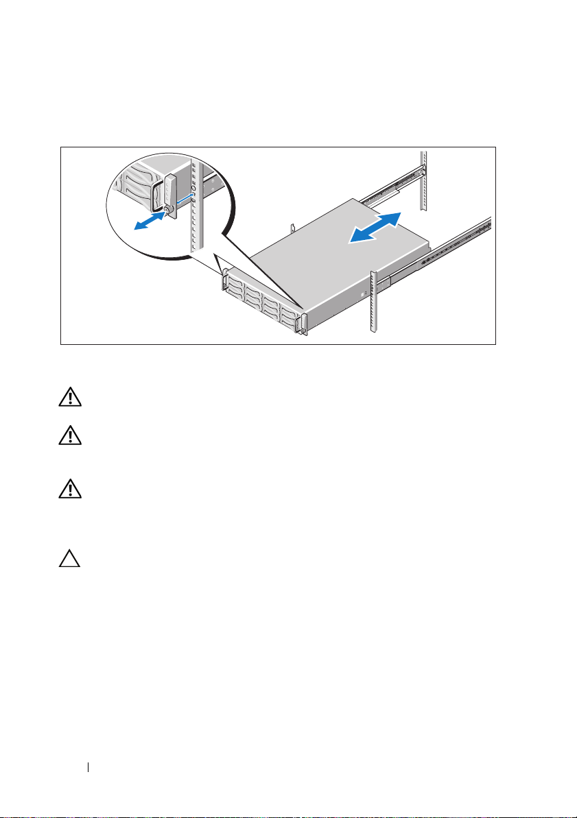 WARNING: The system is not fixed to the rack or mounted on the rails.