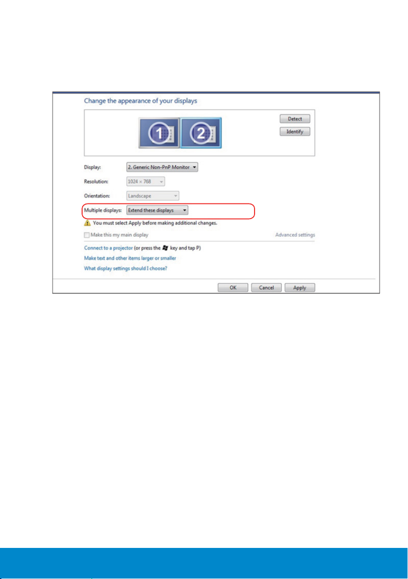 2. Click Multiple displays to choose a display selection. If you do not see the additional monitor listed, click Detect.