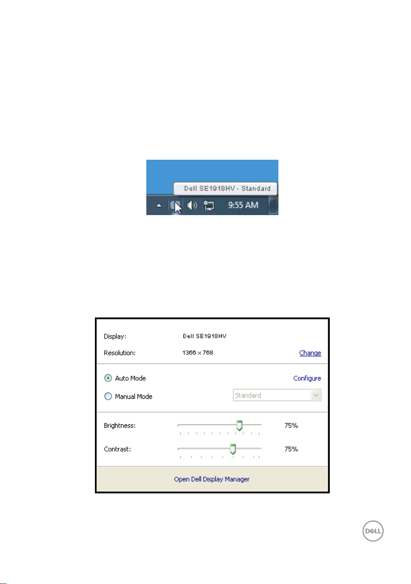 Dell Display Manager의 알림 트레이 아이콘을 클릭하면 간편 설정 대화상자가