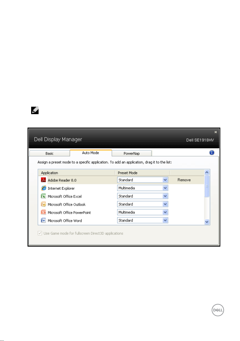 자동으로 적용할 수 있습니다. 자동 모드가 활성화되면 Dell Display Manager
