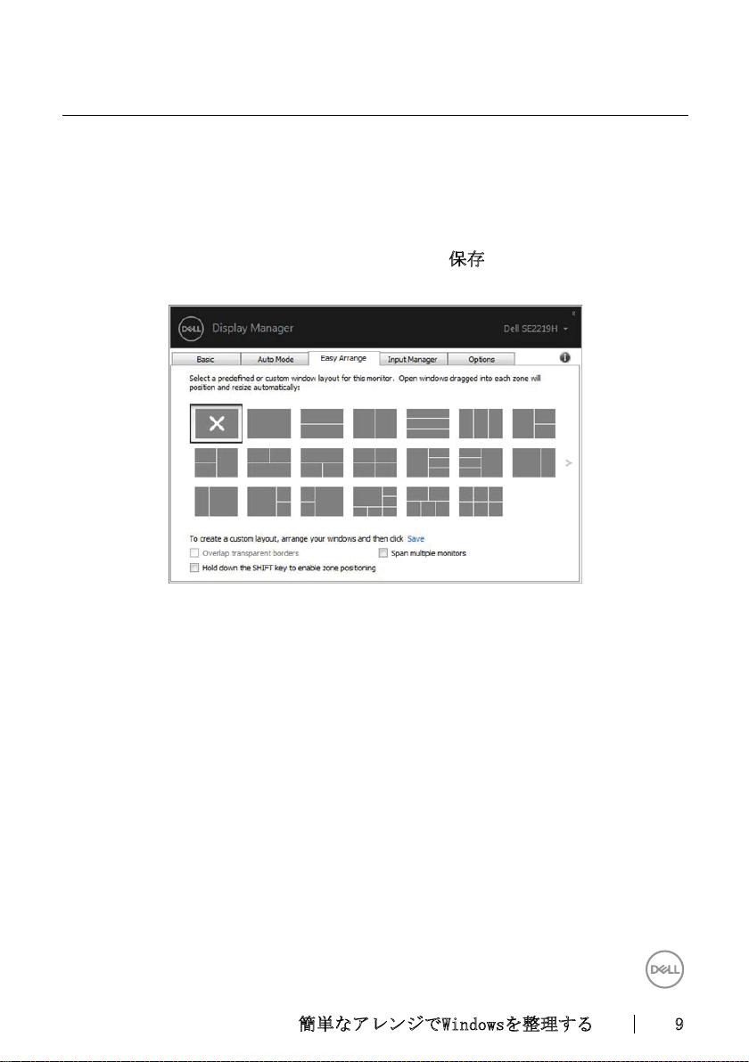 サポートされているDellモニターでは、Easy Arrange(簡単アレンジ)タブ