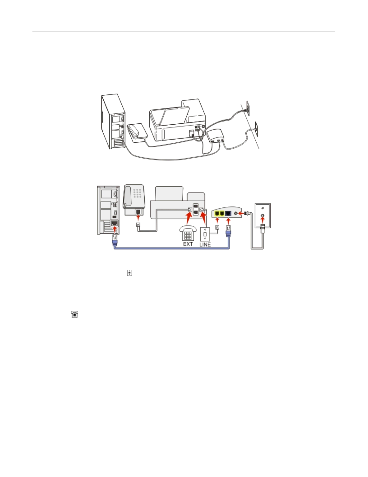 1 イーサネットケーブルをプリンタおよび使用可能なスイッチのポートまたは電話コンセントに挿入します。